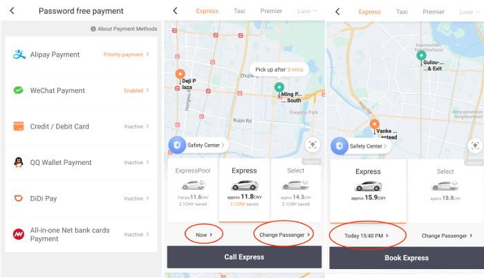 Express: sono in parole povere le auto di privati che offrono il servizio di trasporto. Si dividono in ExpressPoll, Express e Select. La prima è una corsa condivisa con altri passeggeri che “dovrebbero” essere sulla strada della tua destinazione, o ad una distanza di deviazione ragionevole, oppure diretti oltre la tua destinazione. Il prezzo è il più basso che puoi trovare in DiDi, a meno di offerte, che ogni tanto capitano; ma non necessariamente il risparmio vale la condivisione dell’auto o il giro più lungo.