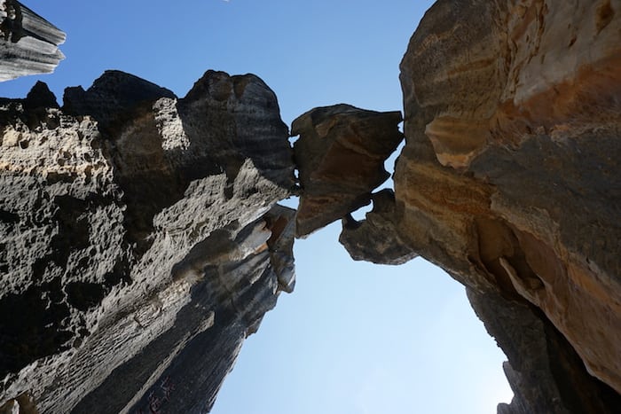 A stone hanging between peaks in the Stone Forest – photo by Fabio Andreetti