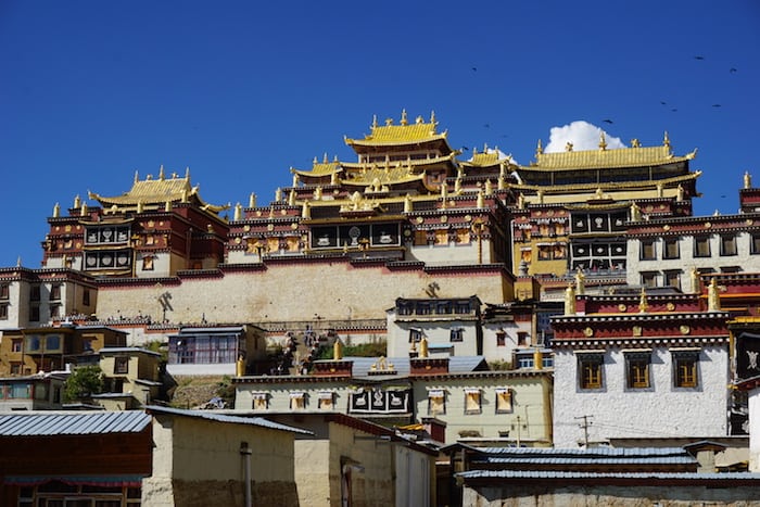 El Monasterio Ganden Sumtseling o Songzanlin Si (松赞林寺) se ha ganado por su fama y belleza el sobrenombre de Little Potala Palace, haciendo referencia a su hermano mayor de Lhasa. Es un extenso complejo a las afueras de la ciudad. El verdadero monasterio está compuesto por dos estructuras (Zhacang y Jikang) que suben por las laderas de la montaña (¡200 escalones!) y dominan el edificio inferior, lleno de residencias, incluso temporales, de monjes.