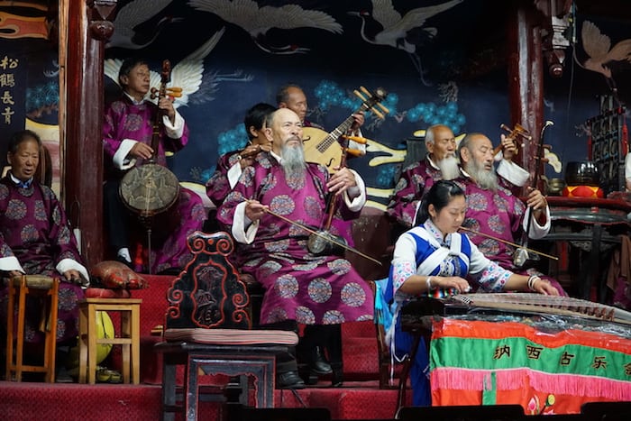 I musicisti Naxi durante lo spettacolo alla Naxi Concert Hall – Foto di Matteo Bosi