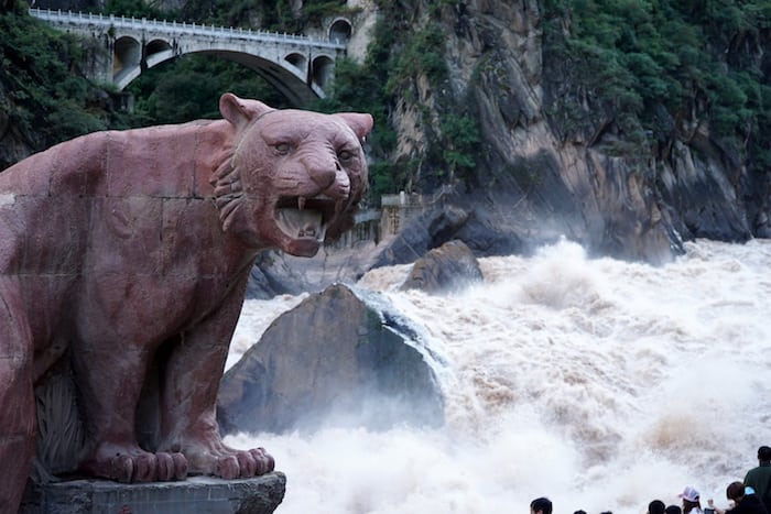 Tiger Leaping Gorge (虎跳峡): a 80 km a nord di Lijiang, è uno dei luoghi più famosi dello Yunnan, la Gola del Salto della Tigre. Là dove lo Yangze si imbottiglia in un canyon tra i più profondi della terra, sorvegliato dall’imponente altezza della Jade Snow Mountain che la stringe nel punto più piccolo, in trenta metri di rapide velocissime e fragoroso scrosciare d’acqua. Il nome deriva dalla leggendaria tigre che utilizzò la roccia che delimita il punto più stretto di tutta la gola, per saltare incolume dall’altra parte. Non è certo questo il modo per godersi al meglio la gola e le sue impressionanti 18 rapide, ma oggi c’è una comoda piattaforma costruita per i turisti che accompagna ad un passo dalla schiuma del fiume. Oppure, opta per i trekking anche di più giorni, che dall’alto offrono una spettacolare esperienza della forza dell’acqua e dell’altezza del canyon.